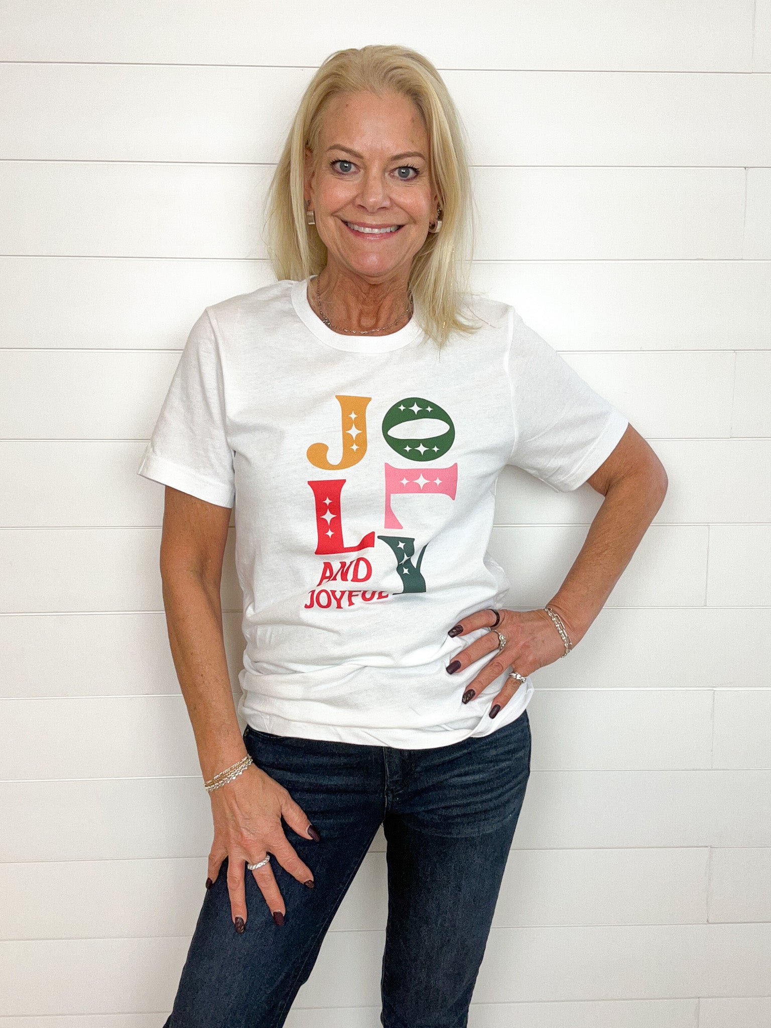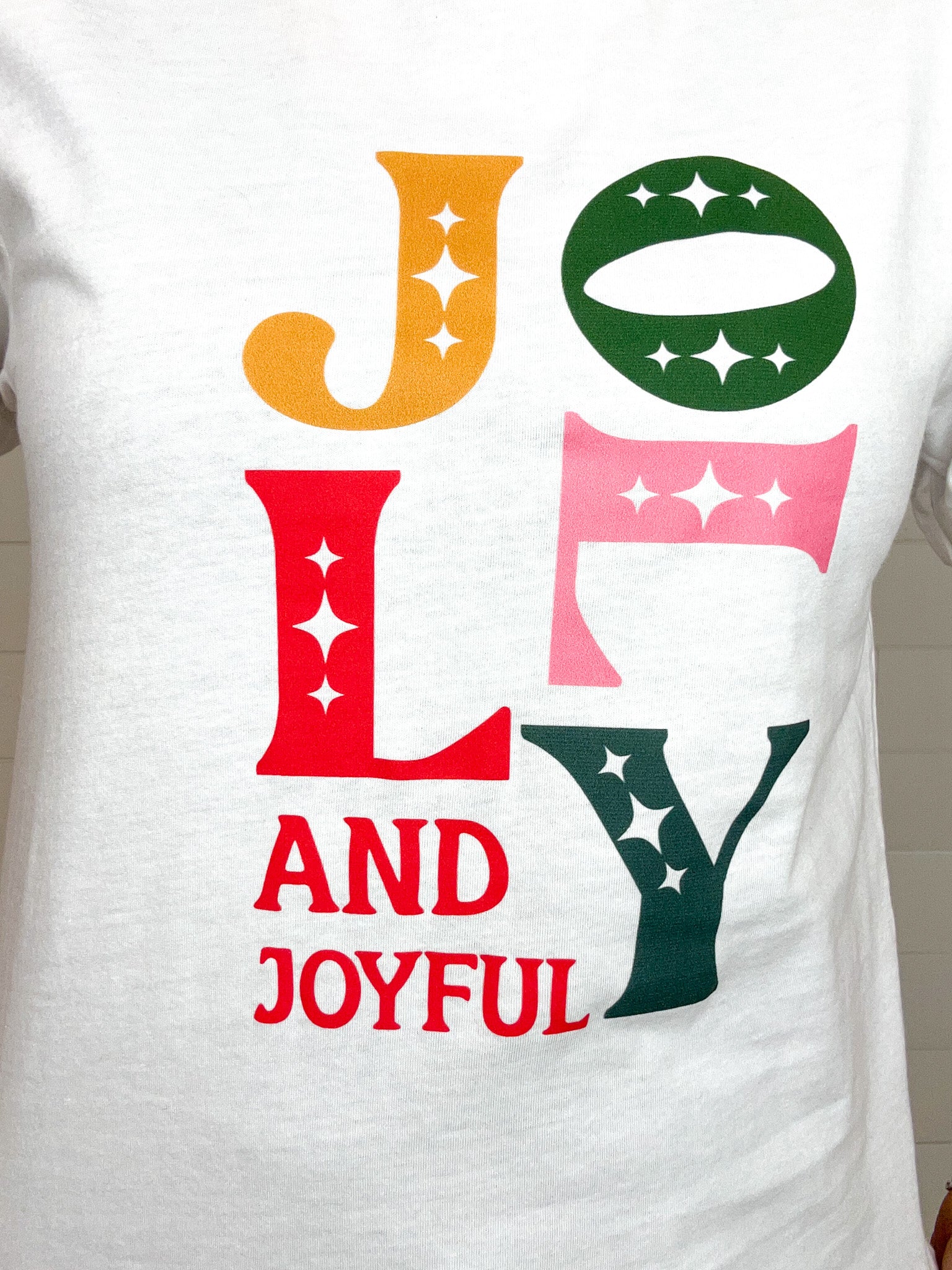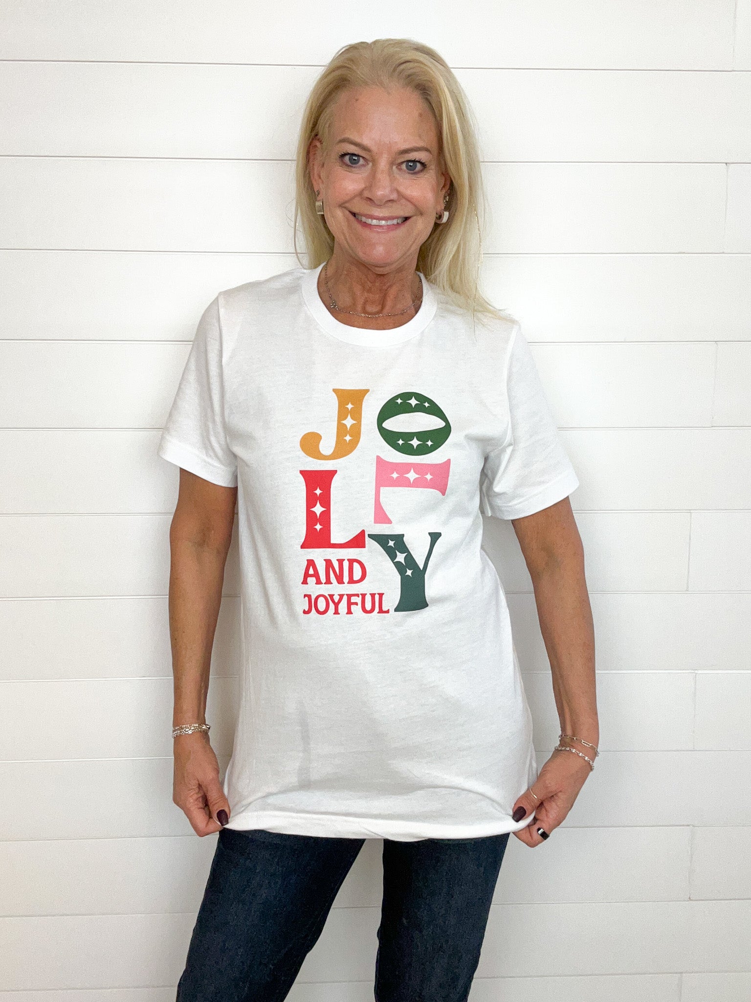 Our Jolly & Joyful Graphic Tee brings instant holiday cheer with its festive lettering and merry spirit! “Jolly” shines in a decorative holiday-style font, perfectly paired with playful script for “and Joyful.” It’s soft, comfy, and made to spread smiles all season long.