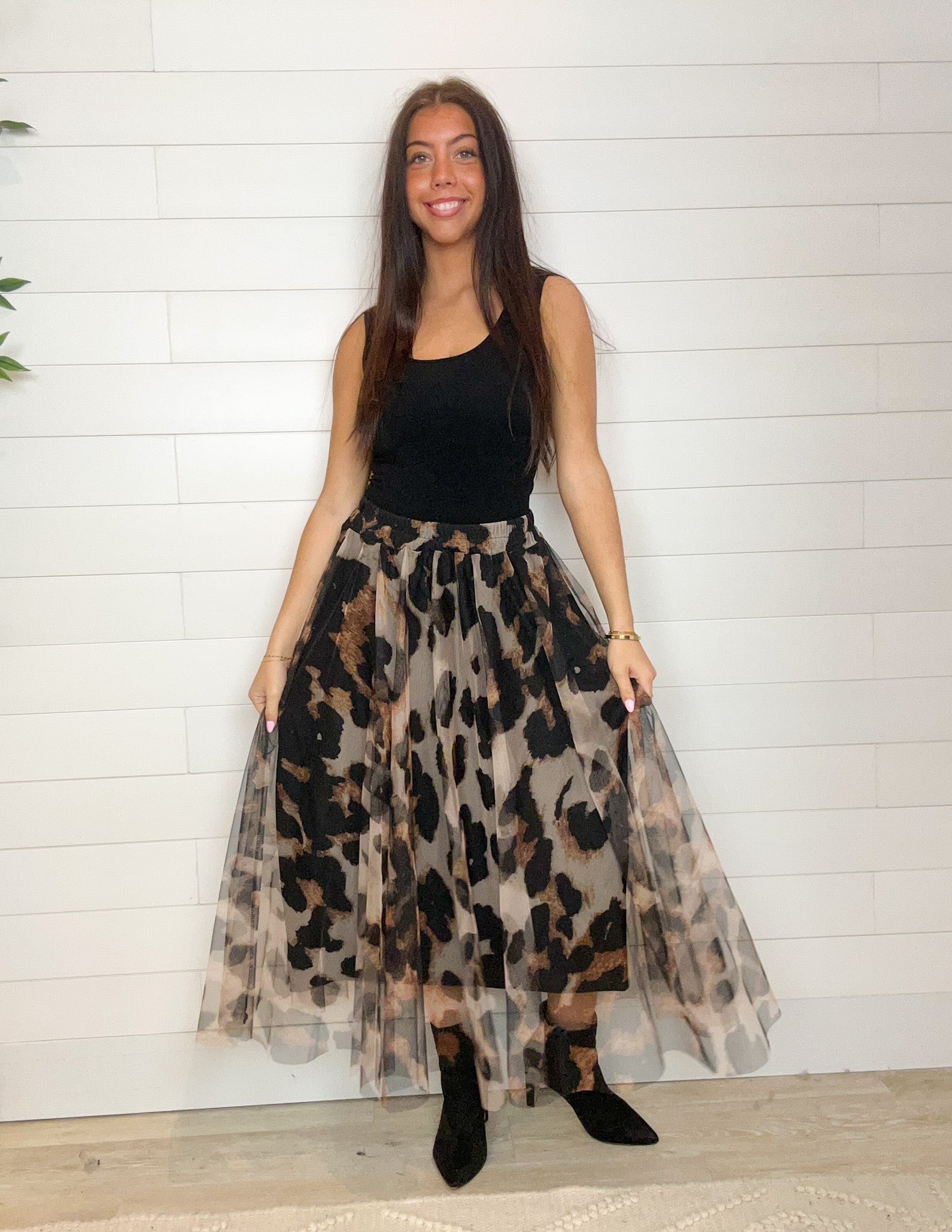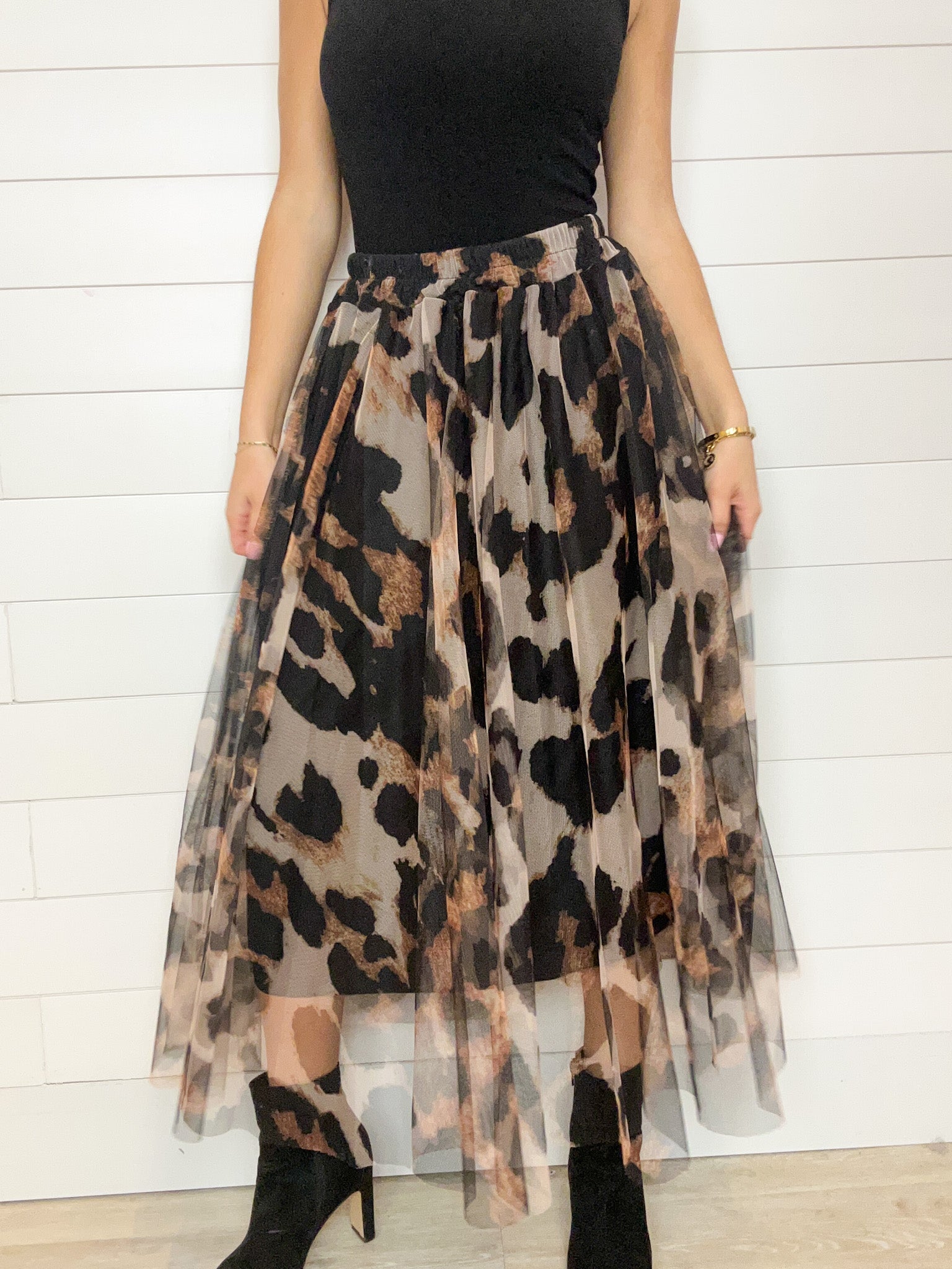 Our classic tulle skirt gets a wild twist with a subtle leopard print that feels equal parts playful and chic. Midi-length with layers of floaty mesh over a soft, stretchy lining, it’s designed to flatter a wide range of body types with its easy pull-on waistband. Whether you edge it up with a moto jacket or keep it dreamy with a tucked-in blouse, this skirt makes every day feel a little more special.