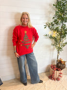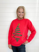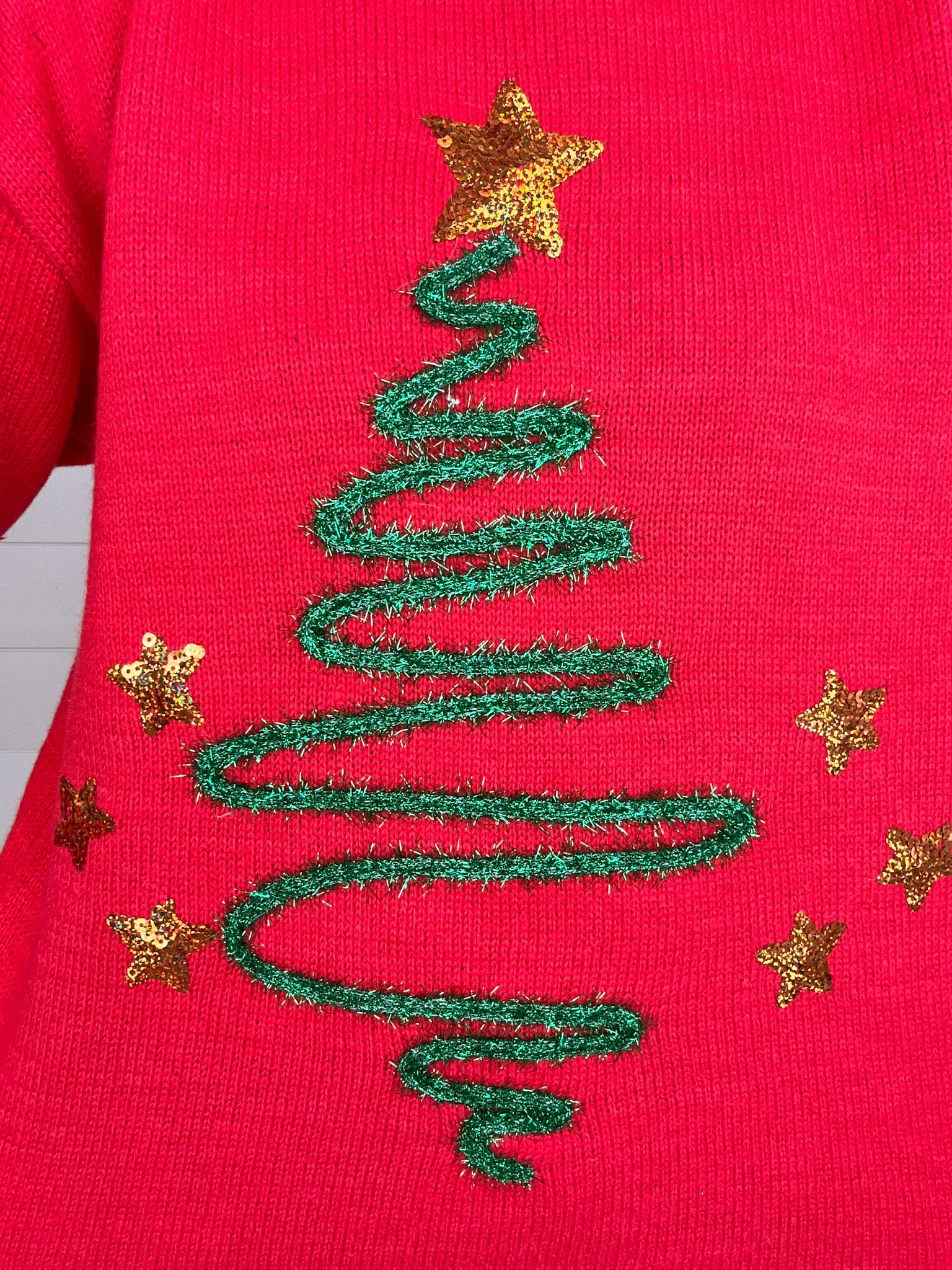 Bring the holiday sparkle wherever you go in our Sequin Star Tinsel Christmas Tree Sweater! This festive favorite features a scribbly tinsel tree design topped with shimmering sequin stars—because more sparkle is always the answer. Cozy, soft, and full of holiday cheer, it’s the perfect pick for cookie swaps, cozy movie nights, or the office Christmas party.