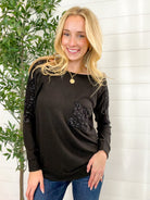 Our Sequin Shoulder & Pocket Shirt adds the perfect dose of glam to your everyday style. With shimmering sequins accenting the shoulders and chest pocket, this soft and slightly oversized top brings comfort and sparkle together like magic.