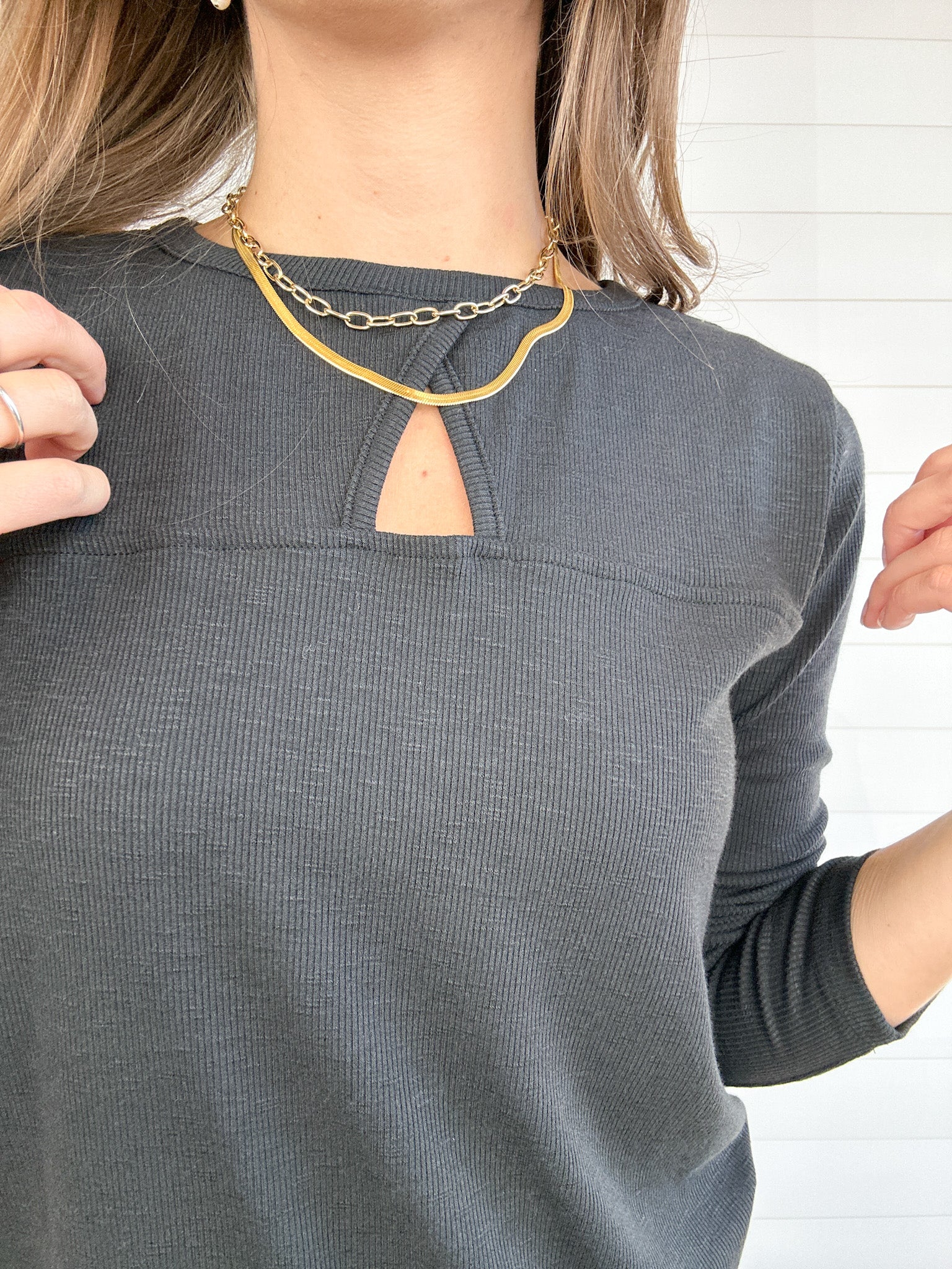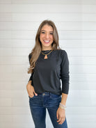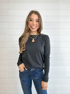 Elevate your everyday wardrobe with the Criss-Cross Keyhole Long Sleeve Top. Crafted from a soft, stretchy fabric, it features a subtle criss-cross detail at the neckline and a keyhole opening for a modern, feminine twist. Comfortable enough for all-day wear yet polished enough to dress up any outfit.