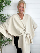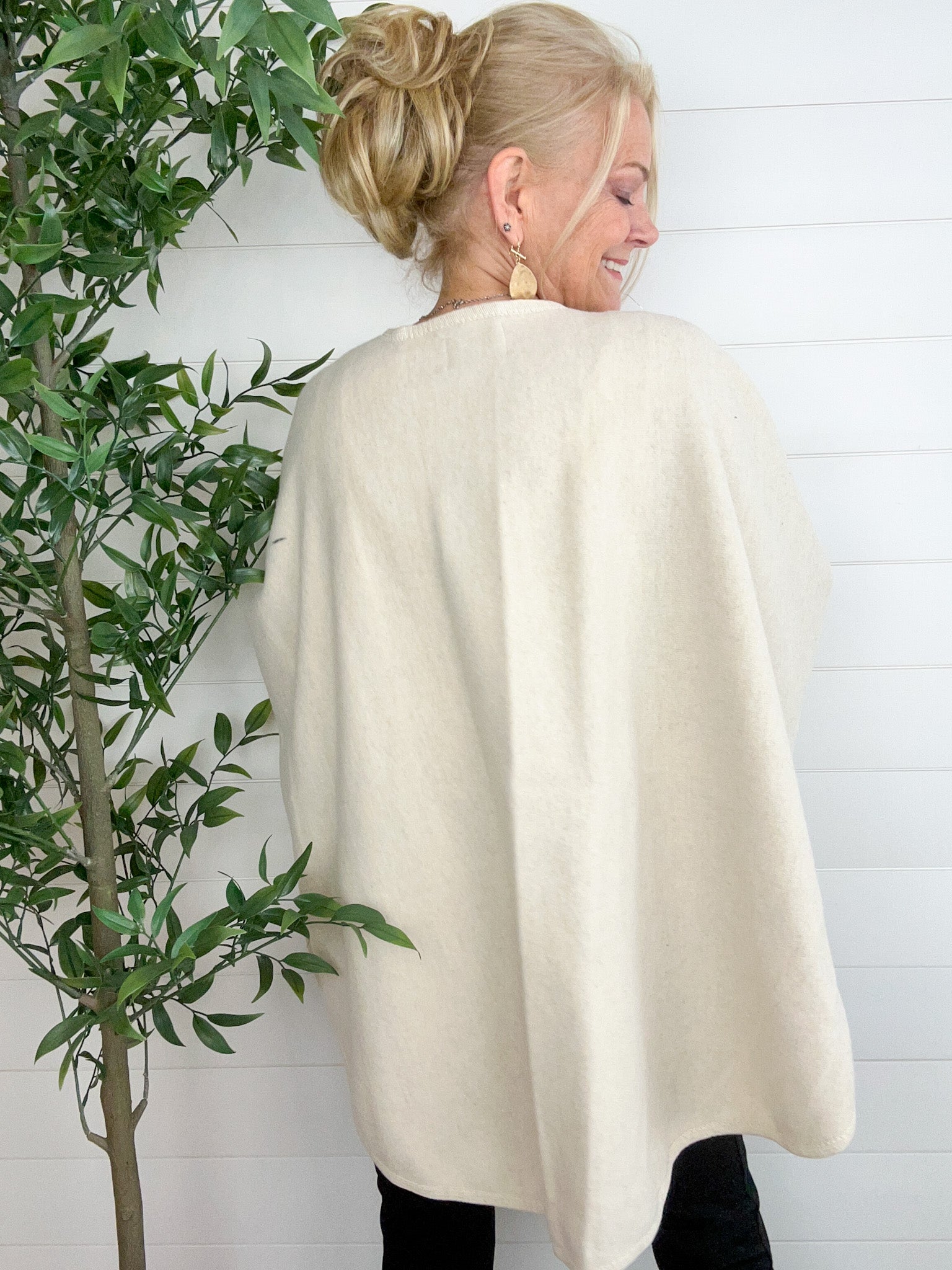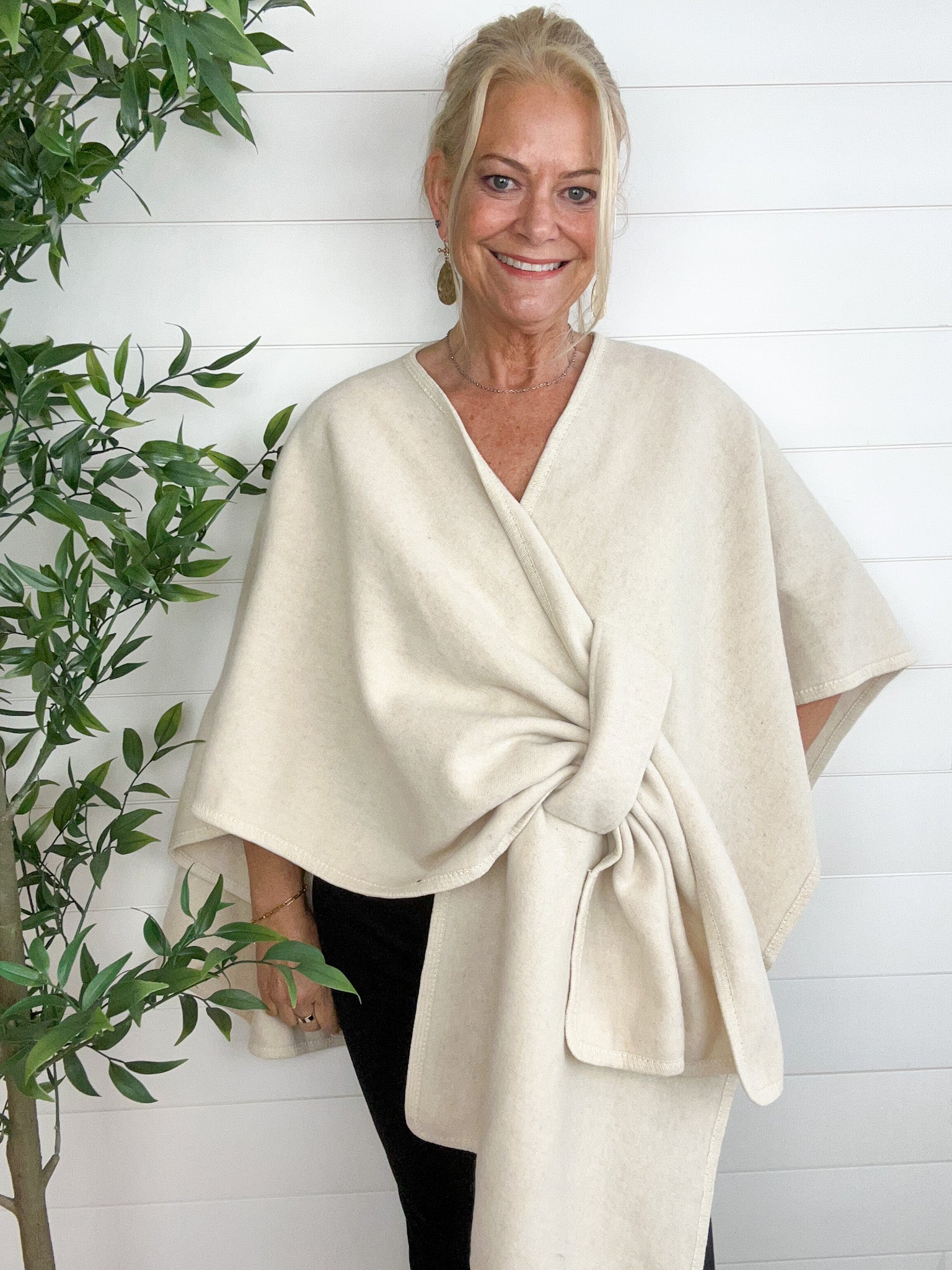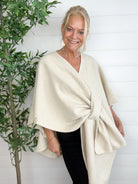 Wrap yourself in effortless elegance with this soft knit cape. Featuring a pull-through front closure and an asymmetrical silhouette, it blends the best of a cape, poncho, and shawl for a versatile, fashion-forward layer. Perfect for fall layering, it keeps you warm while adding a polished touch to any outfit.