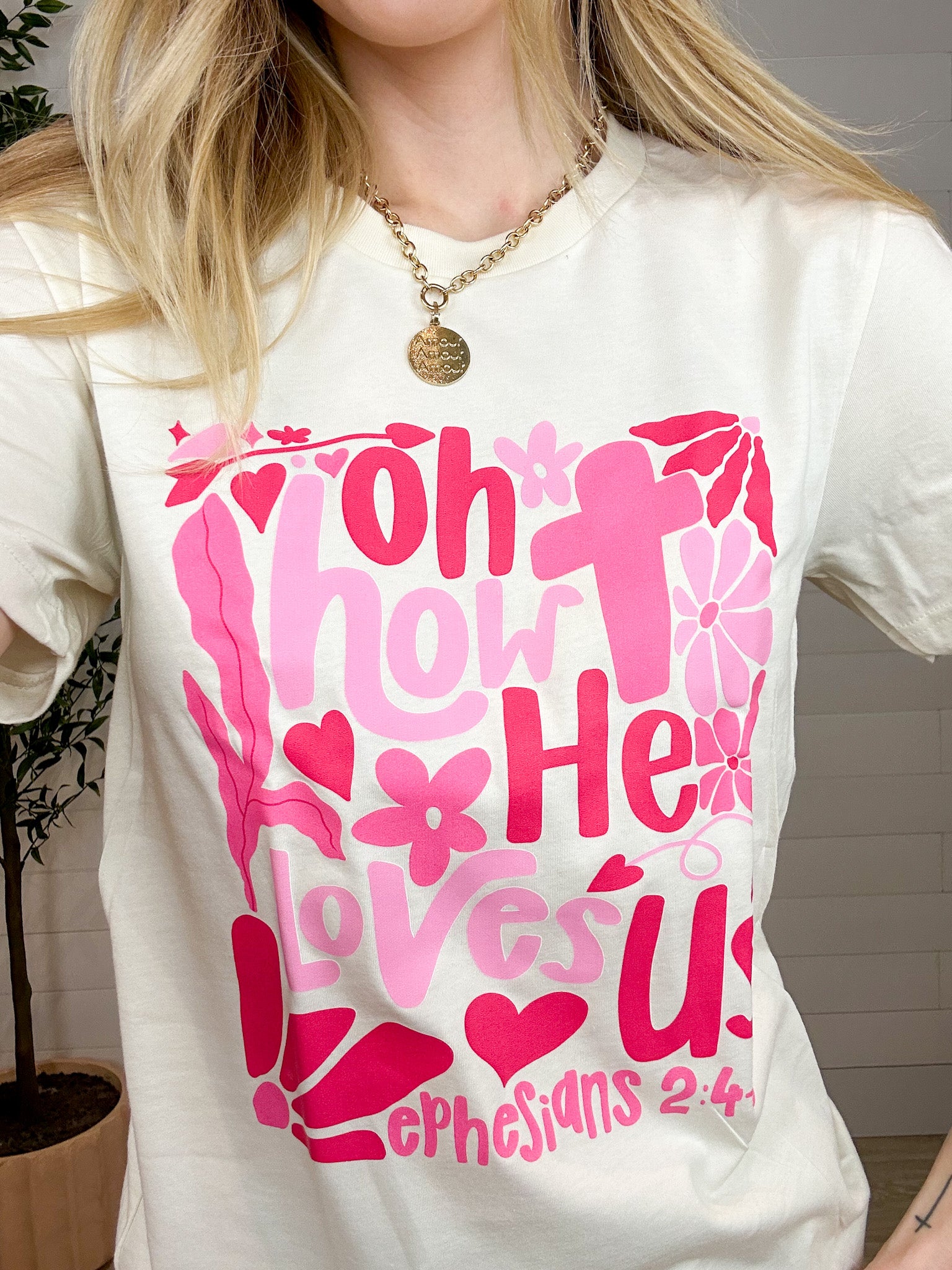 • “Oh how He loves us” graphic with Ephesians 2:4-8