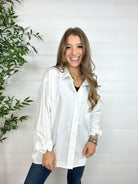 The Oversize Poplin V-Neck Blouse is that perfect blend of relaxed and refined. Made from 100% cotton with a silky poplin finish, it drapes beautifully while feeling soft and breathable. The oversized fit, subtle dolman sleeves, and high-low hem give it an easy elegance — ideal for styling tucked, tied, or left loose.