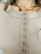 A fresh take on your favorite thermal — this Seam Detail Snap Button Top is cozy, fitted, and effortlessly flattering. Made from soft ribbed fabric with a hint of stretch, it’s perfect for layering or wearing solo for an easy, polished look. The snap front and subtle seam details add just the right touch of style to your everyday lineup.