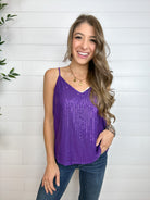 Our Sequin Swing Tank is here to light up your look! This sparkly little number features a loose, flowy fit that catches the light just right, making it perfect for parties, date nights, or layering under a blazer for a glam pop. With adjustable straps and a full lining, it’s as comfortable as it is eye-catching.