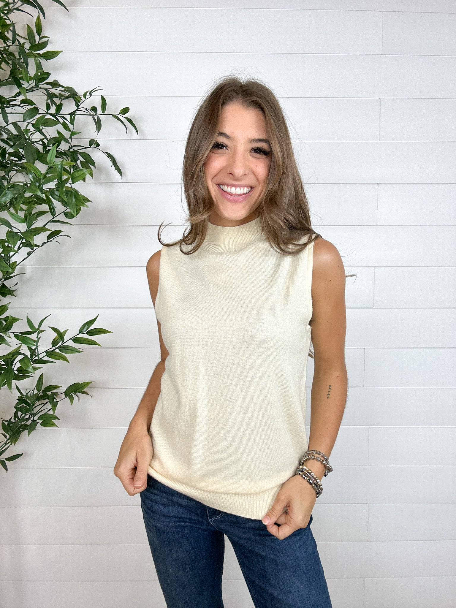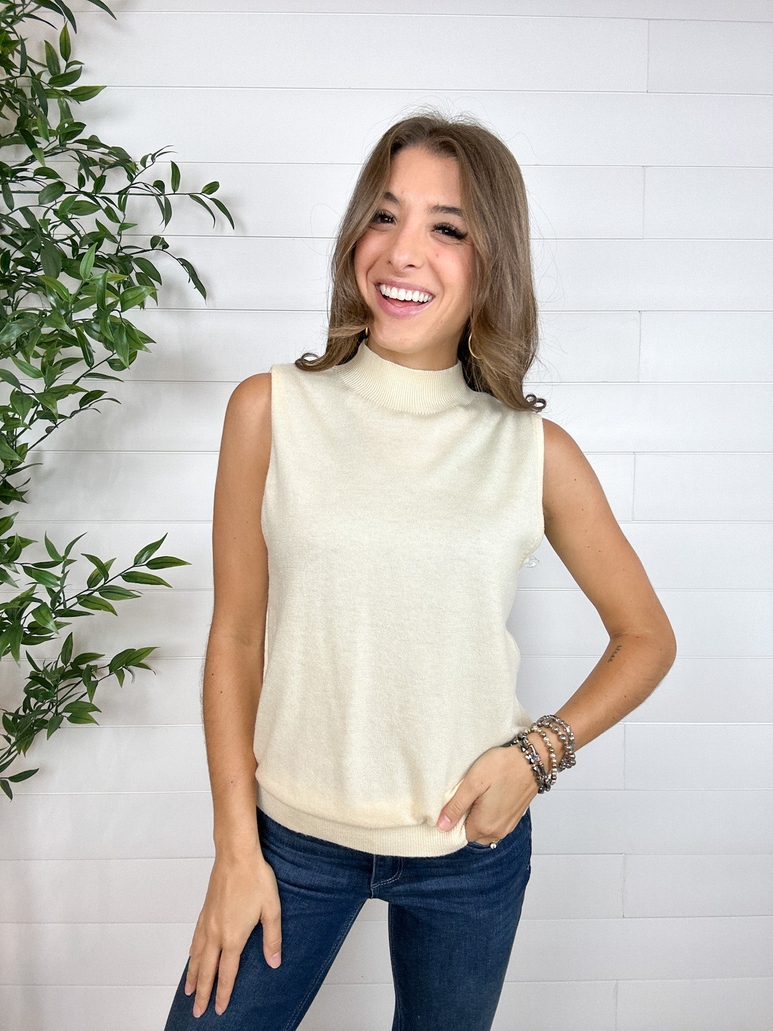 Sleeveless Mock Neck Layering Sweater Top