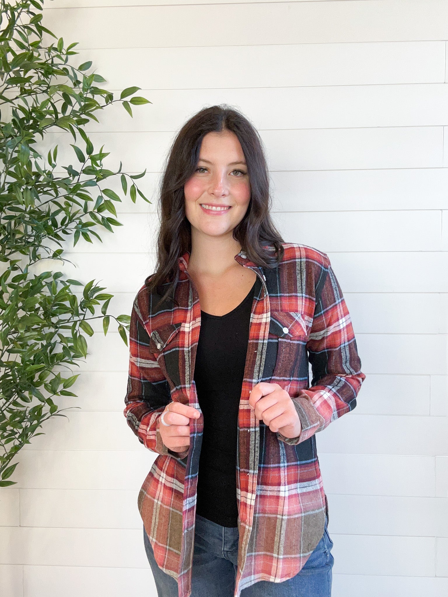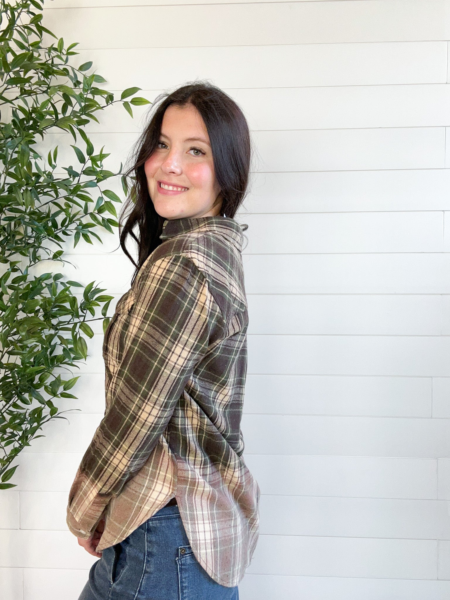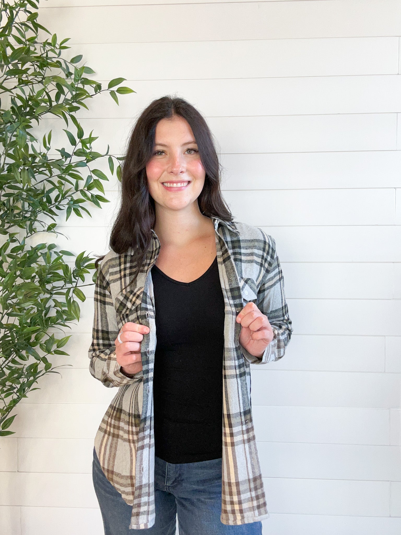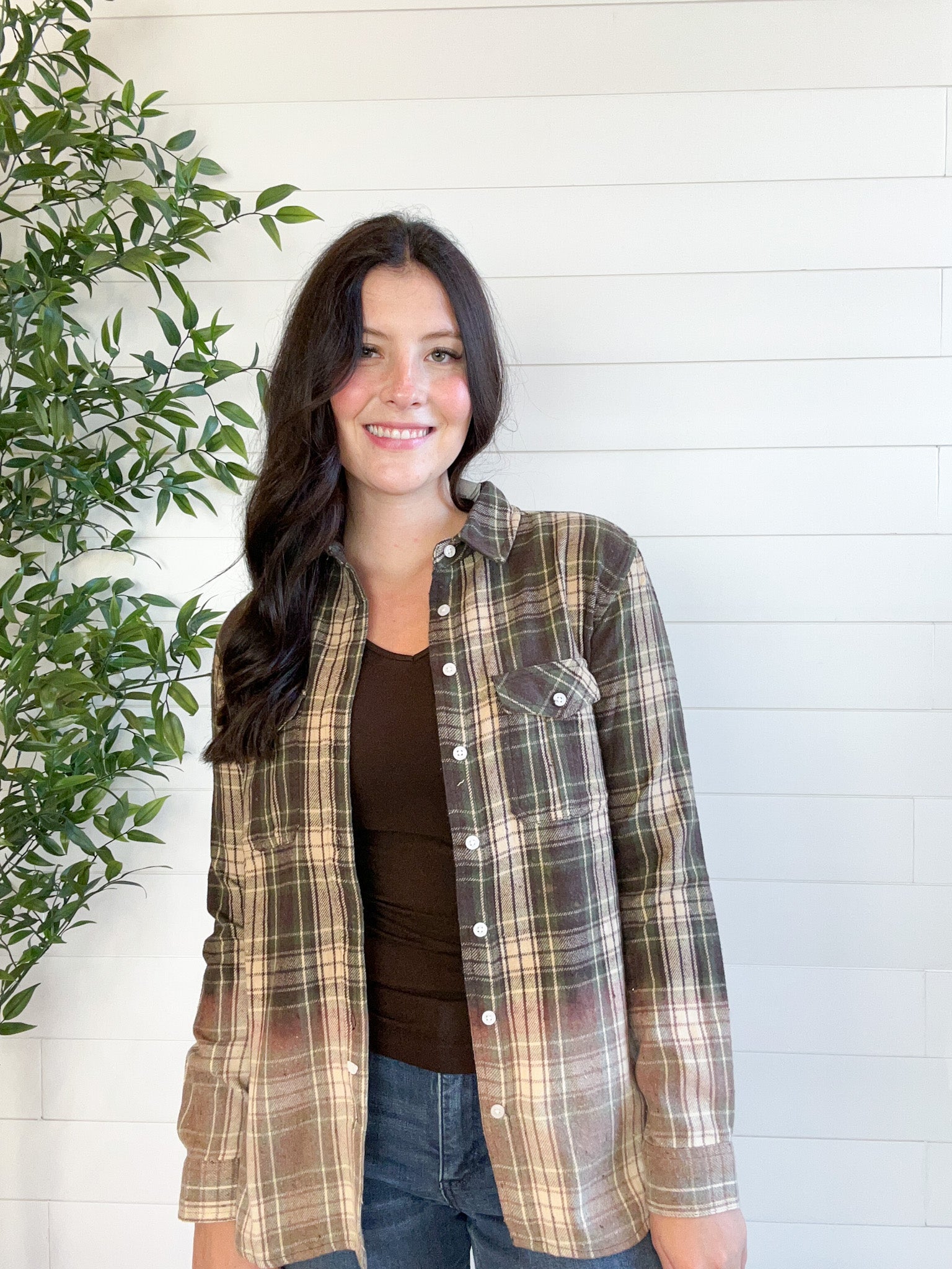 This Bleach Dip Plaid Shacket takes your classic flannel look and gives it a fresh, modern update. The bleach-dipped detail makes every colorway pop—whether you go bold with black and red, earthy with green and brown, or neutral with grey, black, and tan. Made from 100% cotton, it’s soft, sturdy, and the perfect extra layer for chilly days.