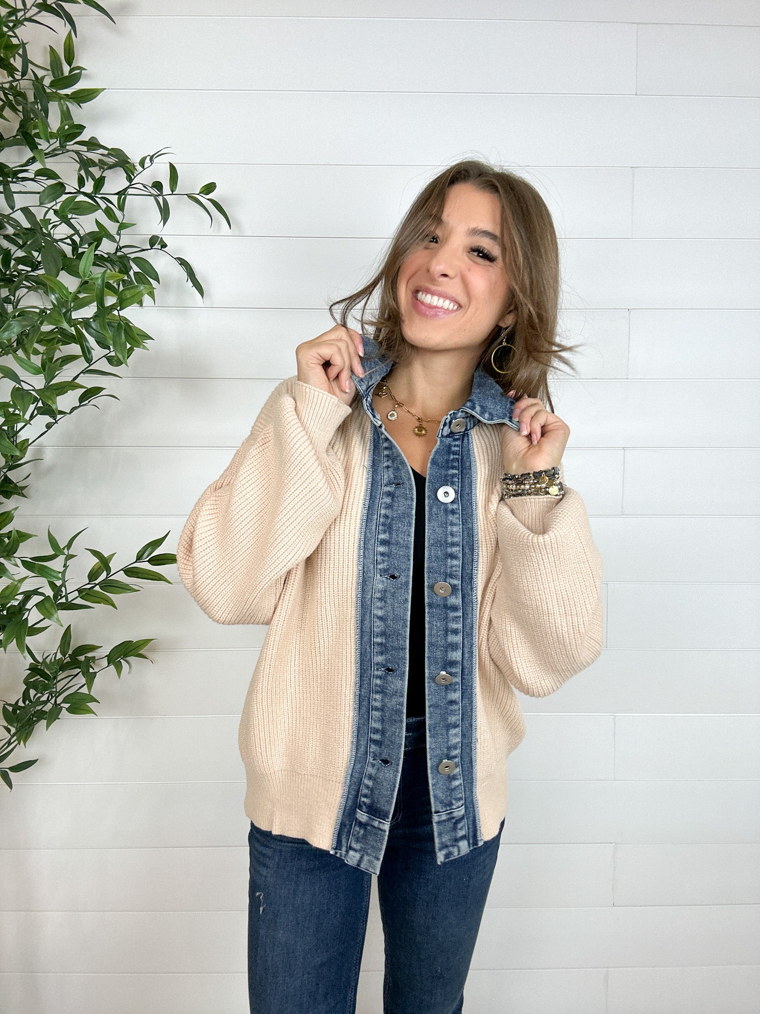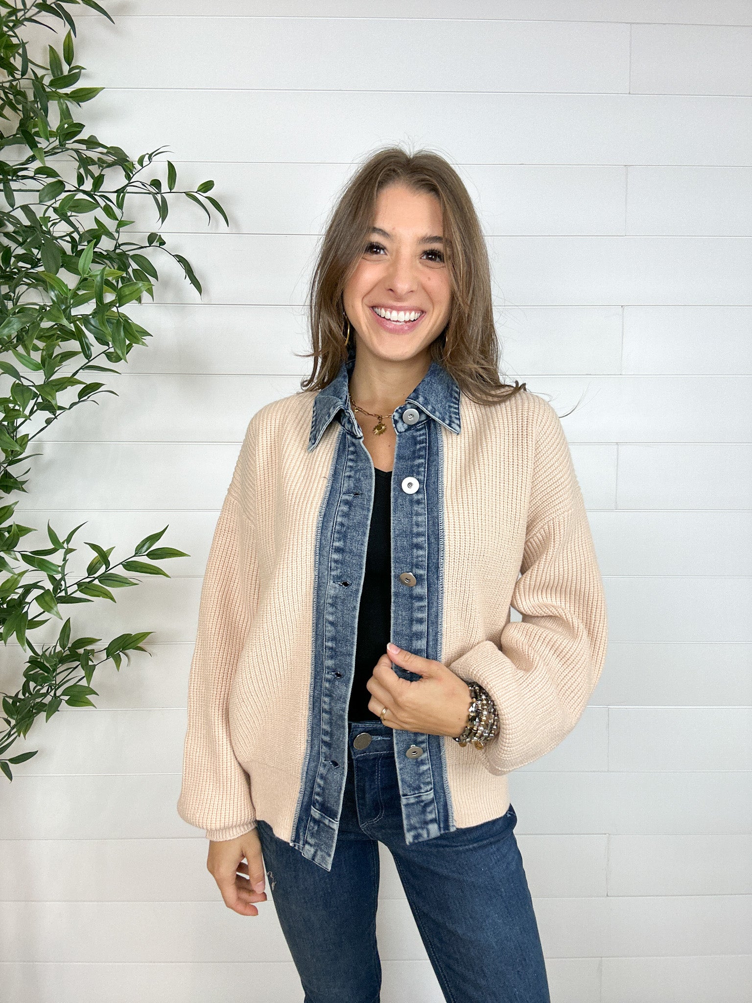 A little denim, a little cozy—this cardigan is the best of both worlds! The Denim Contrast Sweater Rib Cardigan mixes a soft, stretchy rib knit body with a denim button-front for that effortlessly cool, layered look (without the bulk). It’s relaxed, comfy, and just the right amount of unexpected—perfect for jeans, skirts, or tossed over a tee.