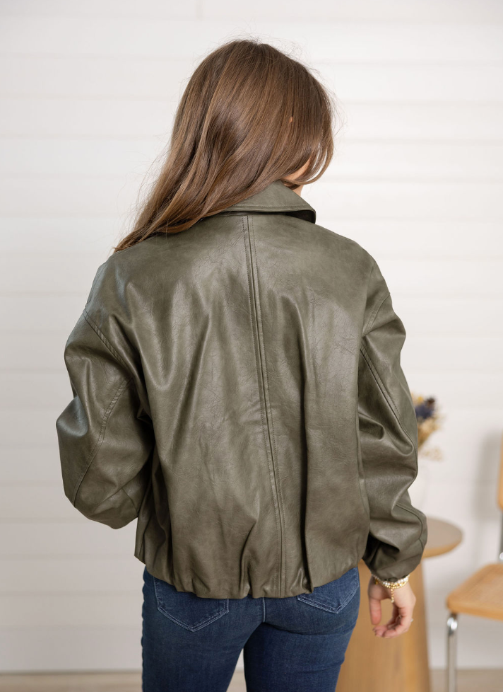 Elan Faux Leather Classic Bomber Jacket
