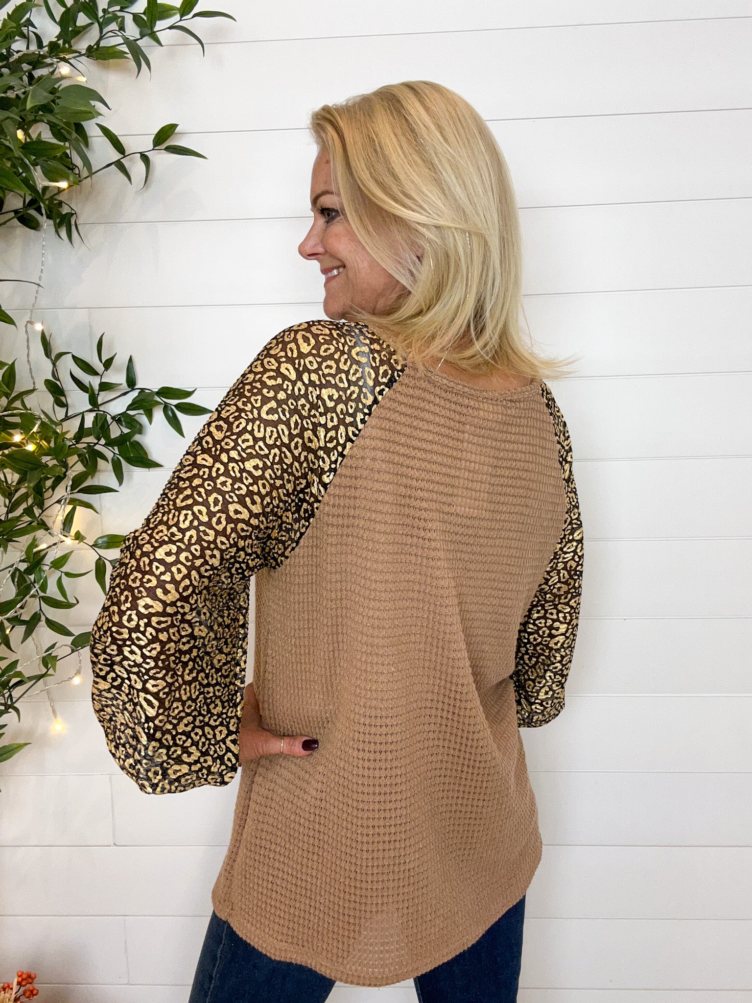 Gold Foil Leopard Raglan Sleeve Top