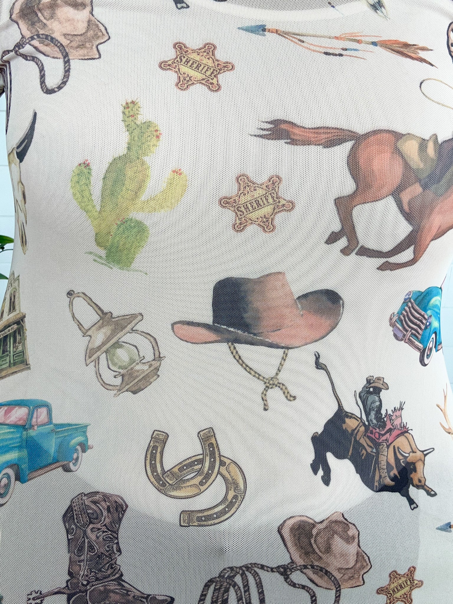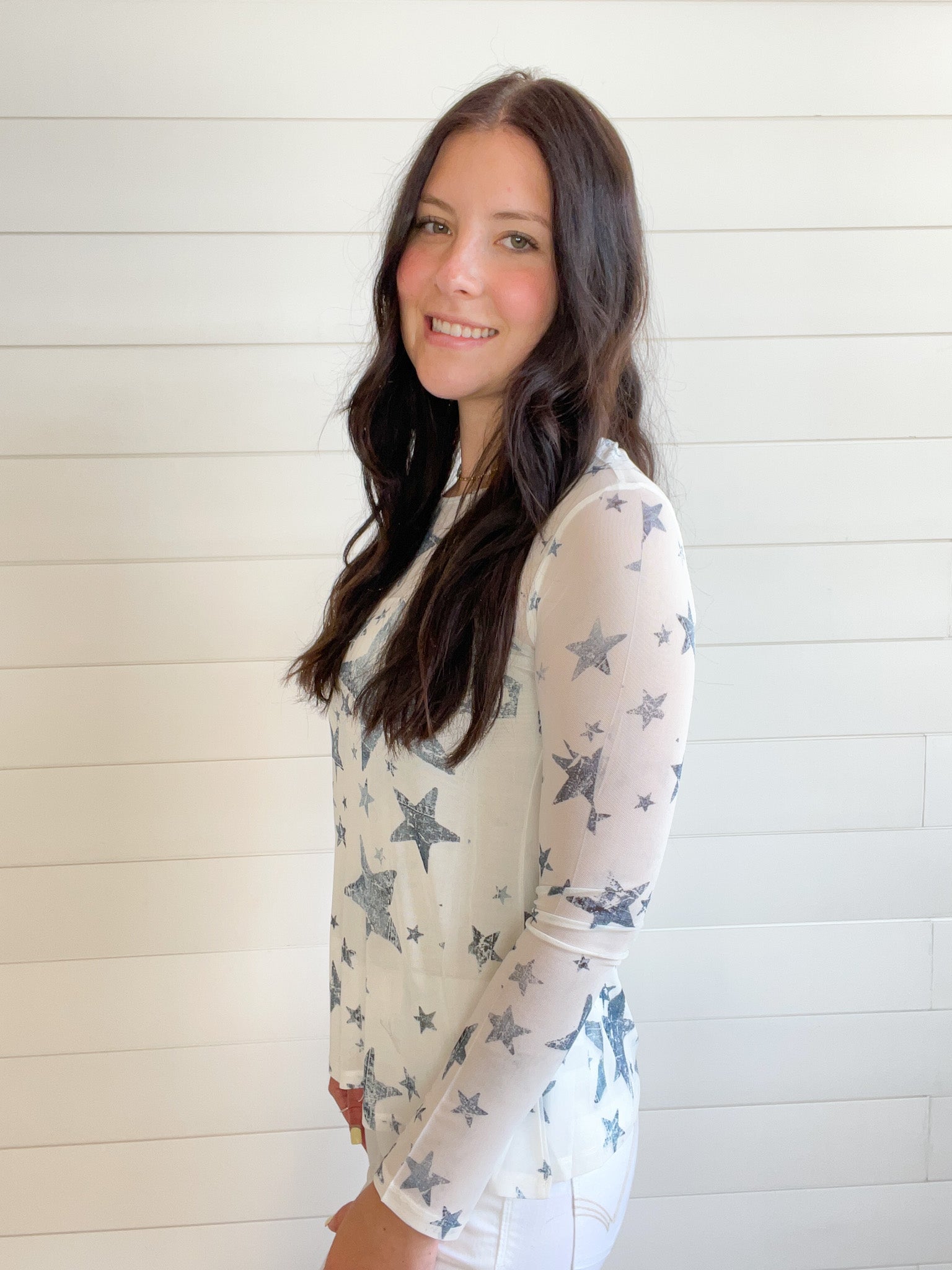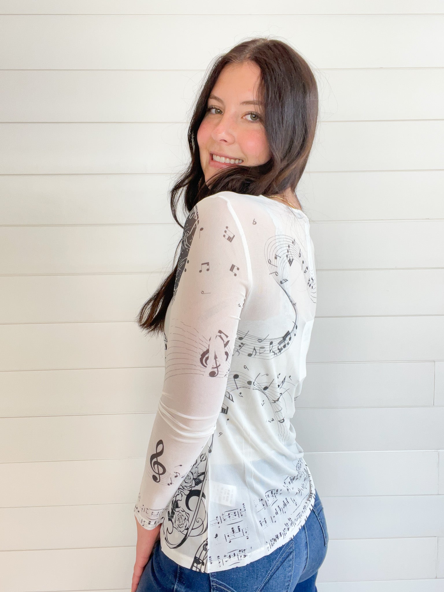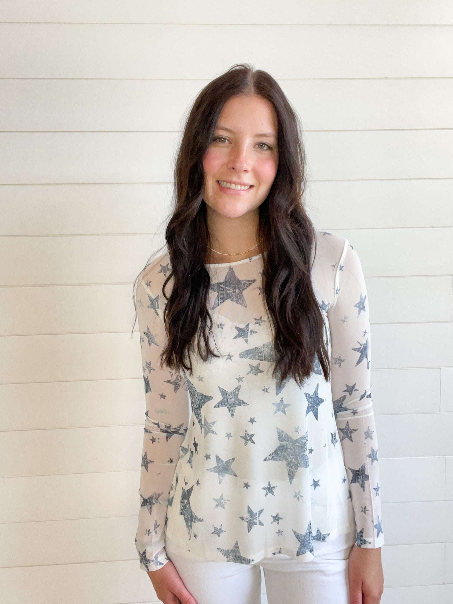 The Graphic Print Lightweight Stretchy Mesh Layering Top adds a playful touch to your casual wardrobe.
