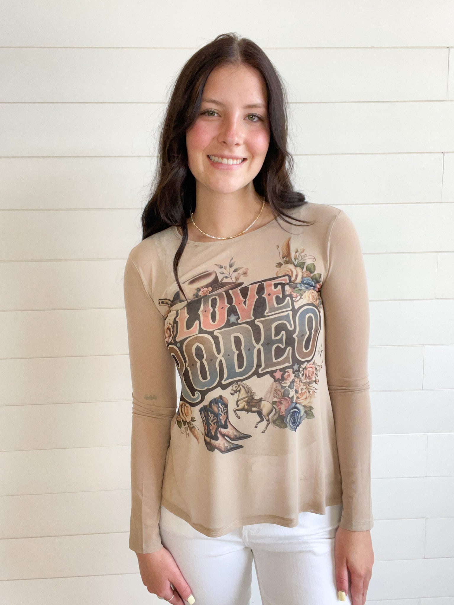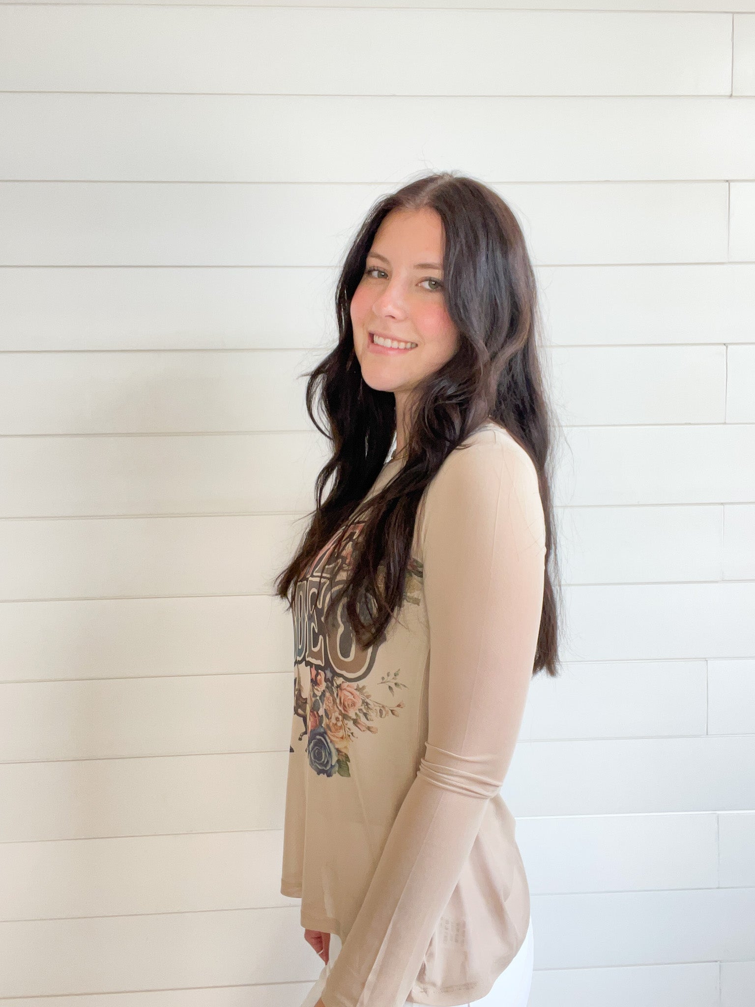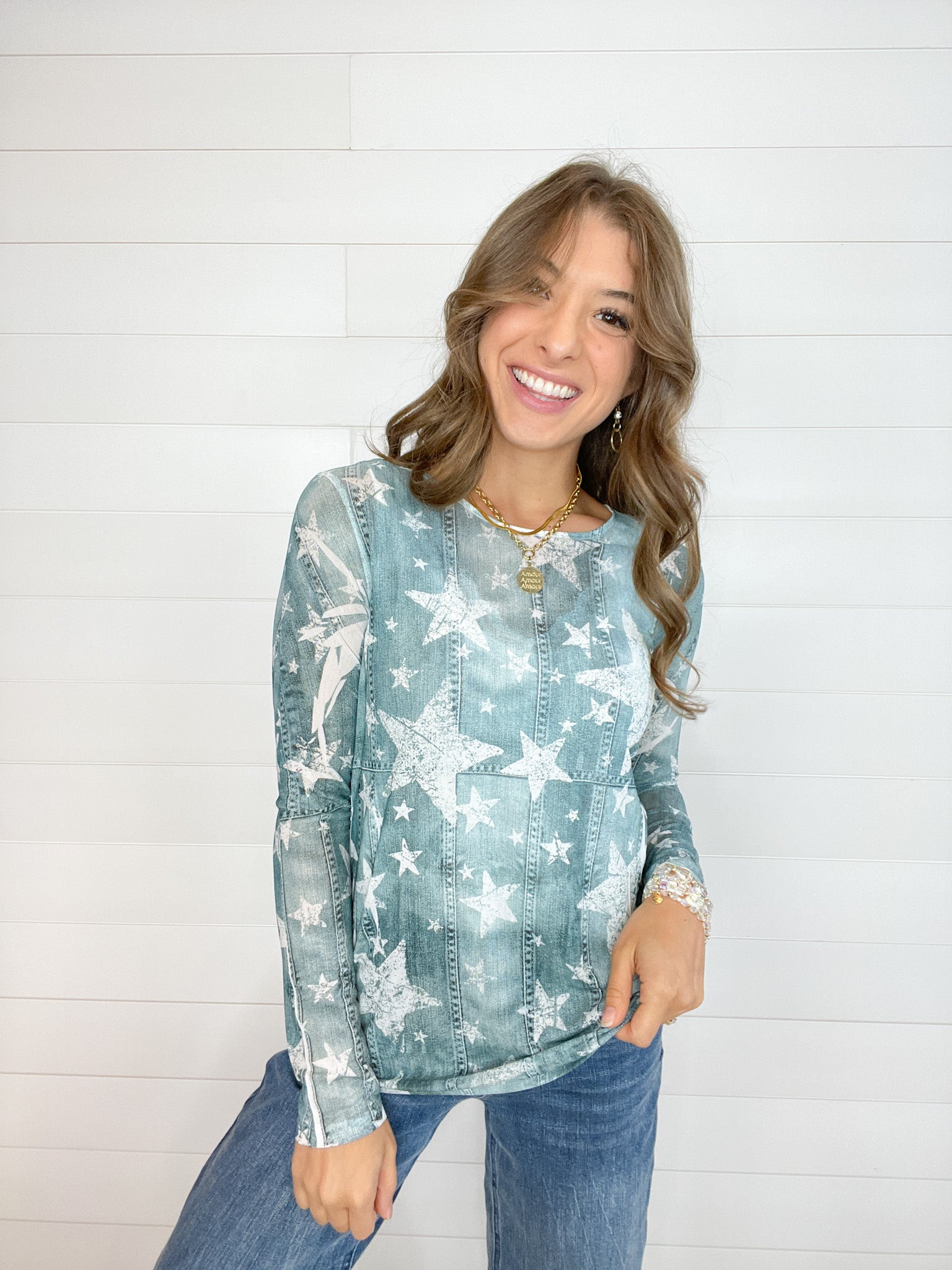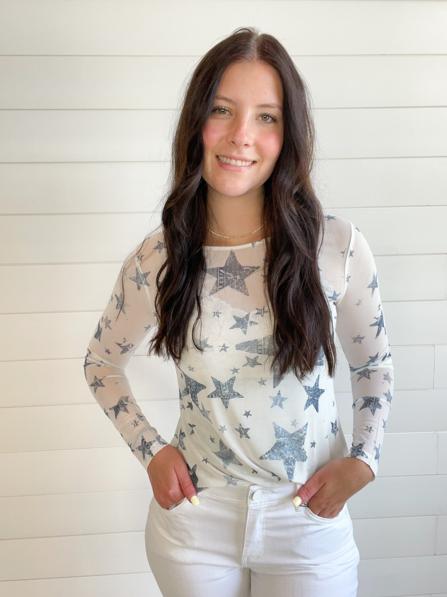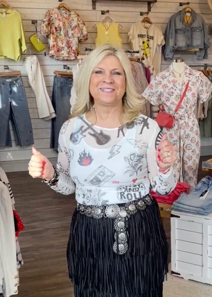 The Graphic Print Lightweight Stretchy Mesh Layering Top adds a playful touch to your casual wardrobe.