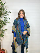 Intricate Mixed Knit Structured Ruana