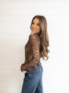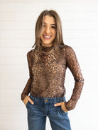 This semi-sheer leopard mesh top adds instant edge to any outfit. Designed with a sleek mock neck and long sleeves, it’s the perfect lightweight layer to mix and match with everything from camis to dresses. The subtle, all-over leopard print brings just the right amount of fierce flair, making it a standout staple for day or night.