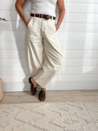 The Made in Italy Corduroy Barrel Trousers bring that relaxed, European-chic vibe you’ll love living in. Crafted from soft, stretchy corduroy, these pants feature a modern barrel-leg silhouette that tapers just right at the ankle. Designed with a comfy mid-to-high rise, a button and zipper closure, and a removable light brown belt to tie it all together.