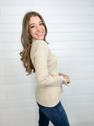 From our private MB line, this polo sweater is anything but basic. The ribbed knit hugs just right, while the open v-neckline flatters without the fuss of buttons. Contrasting crochet trim frames the neckline and split cuffs for that sweet little detail that sets it apart. Comfy, stretchy, and chic—this one’s an instant classic.