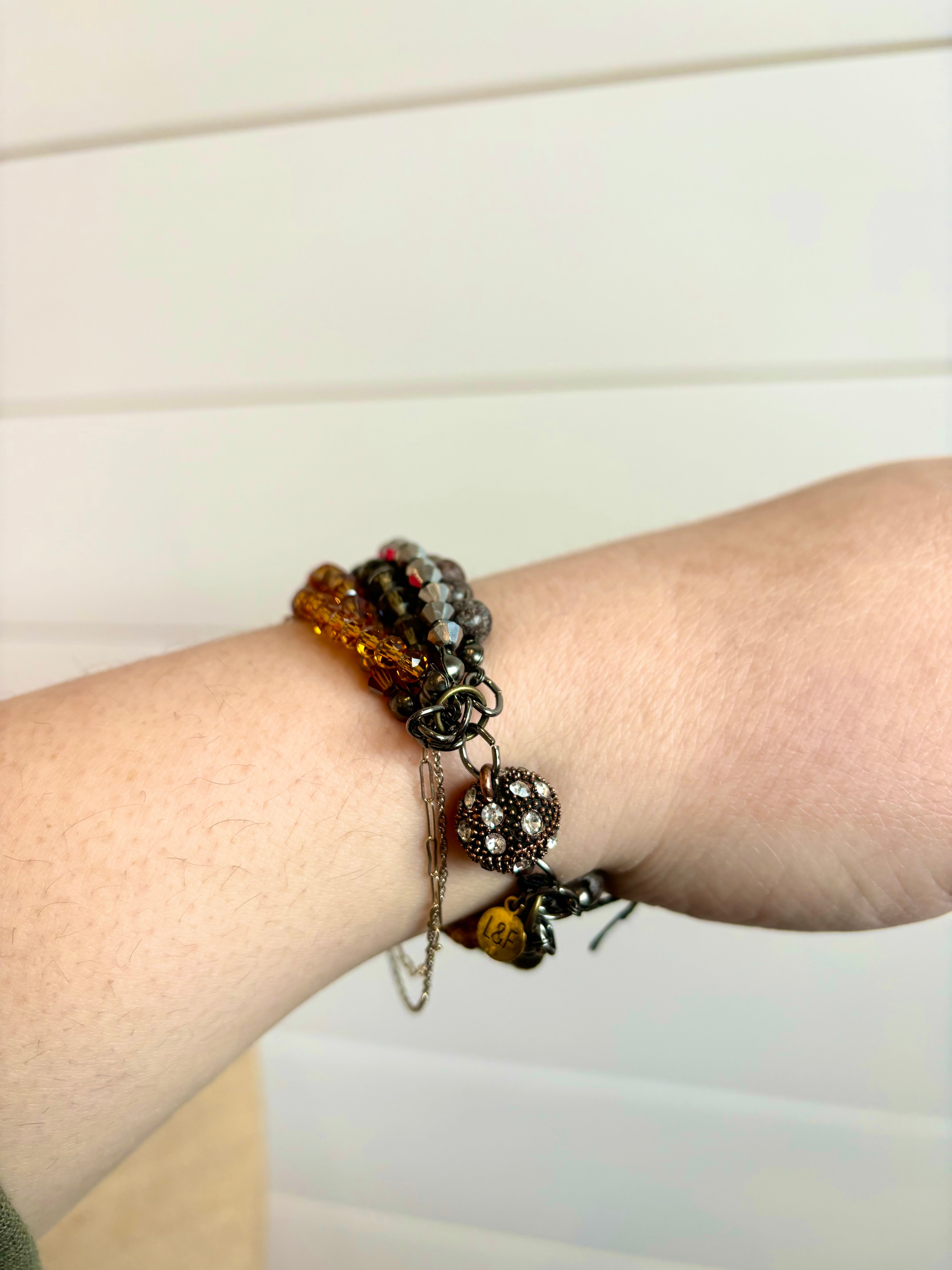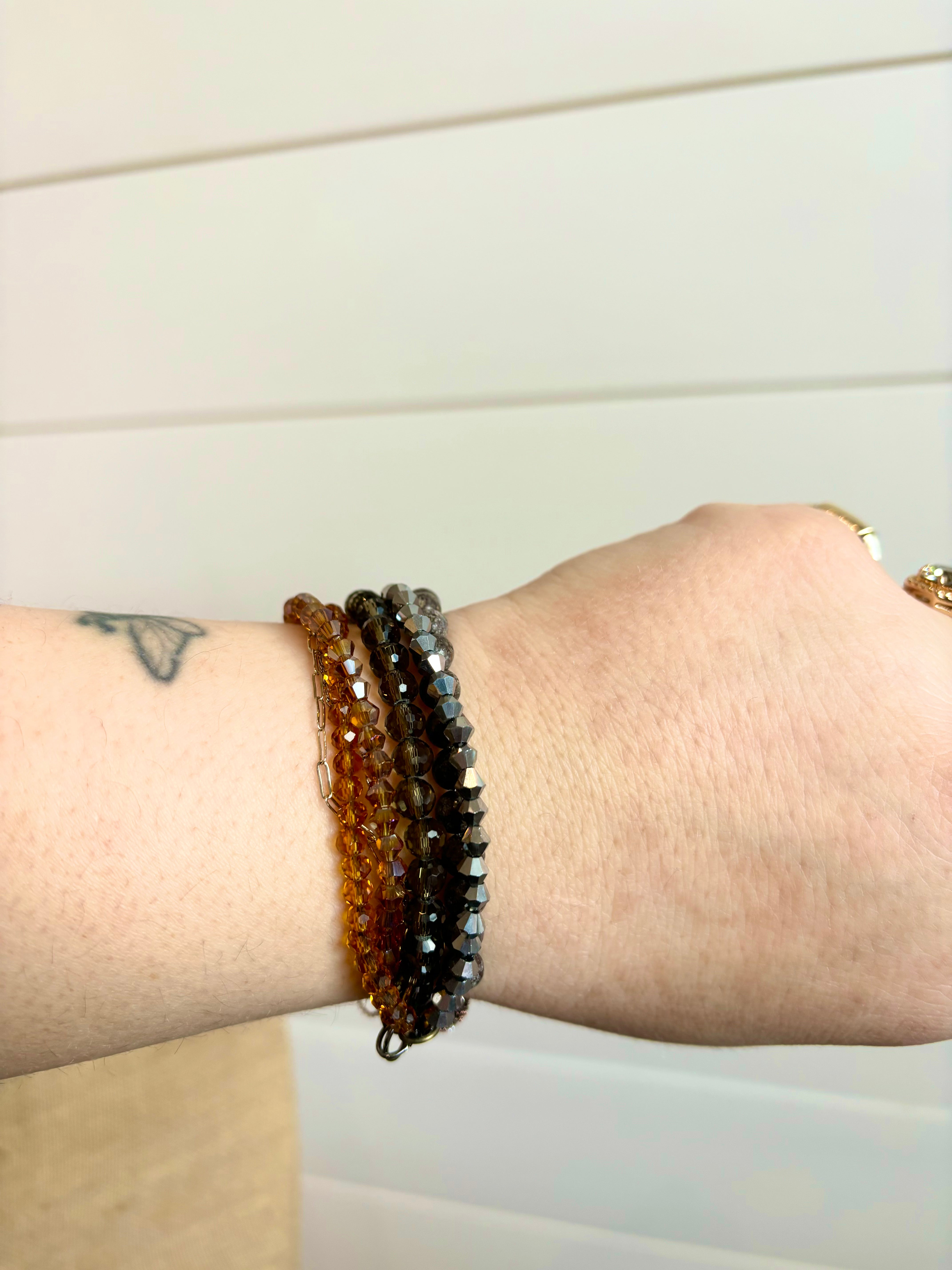 The Multi-Strand Beaded Bracelet with Magnetic Closure is a stylish and functional accessory, perfect for adding texture and elegance to your look.