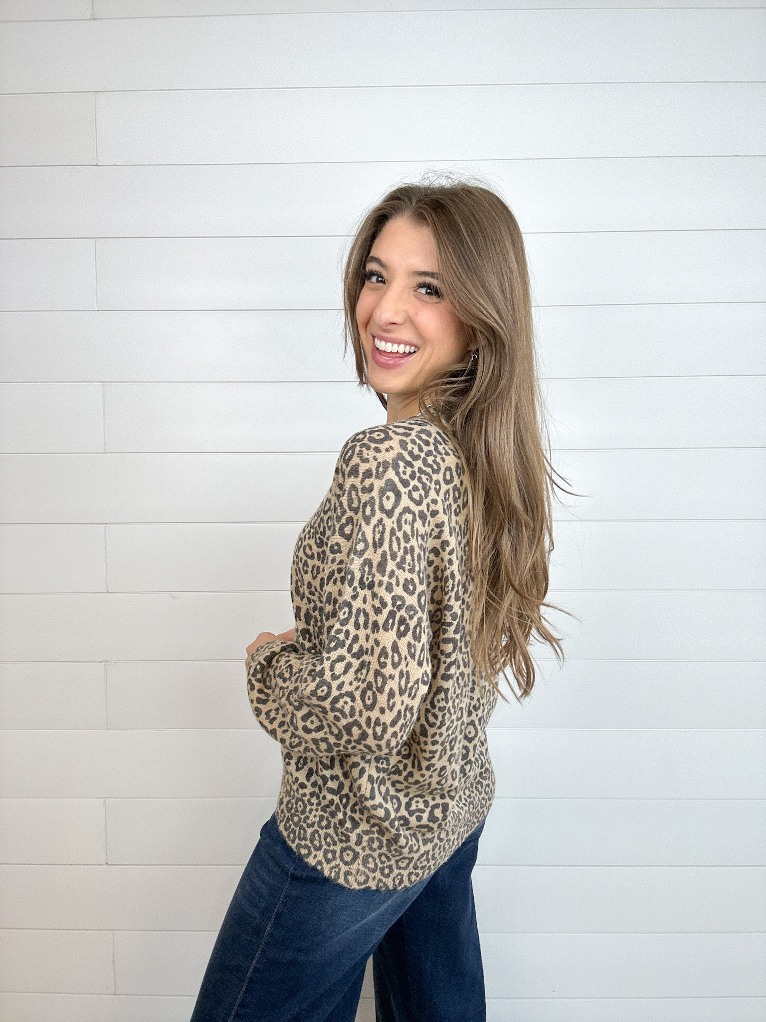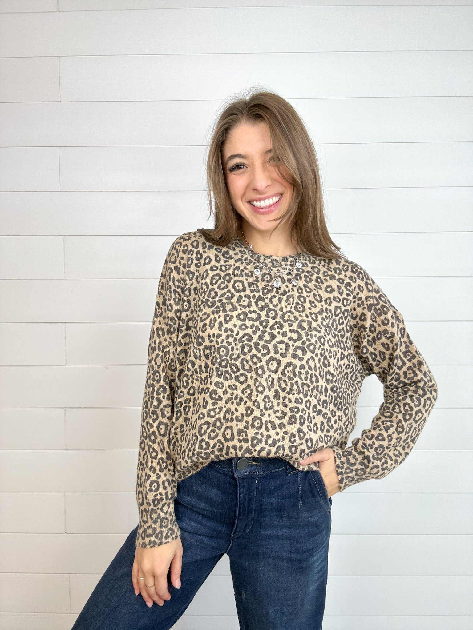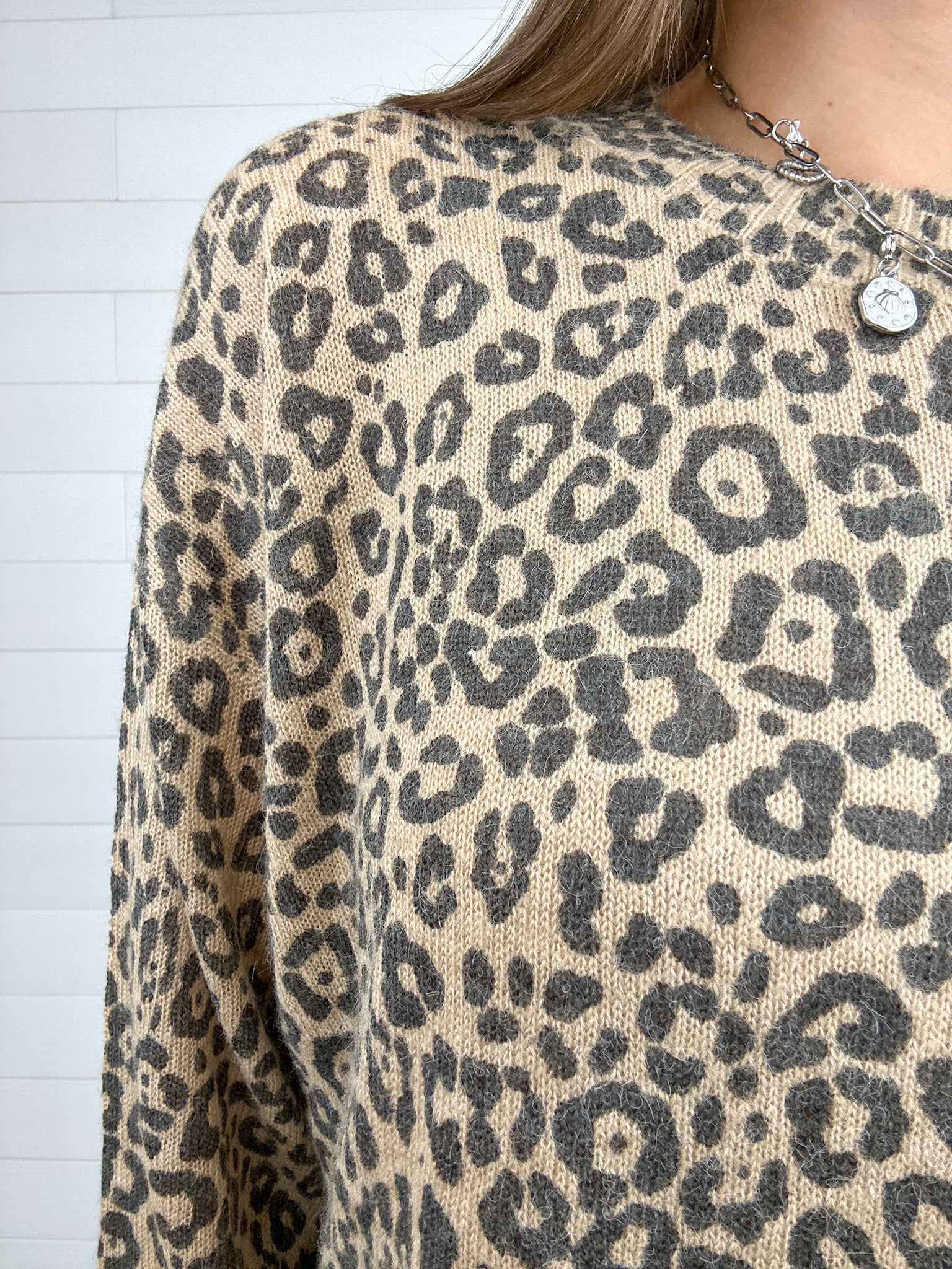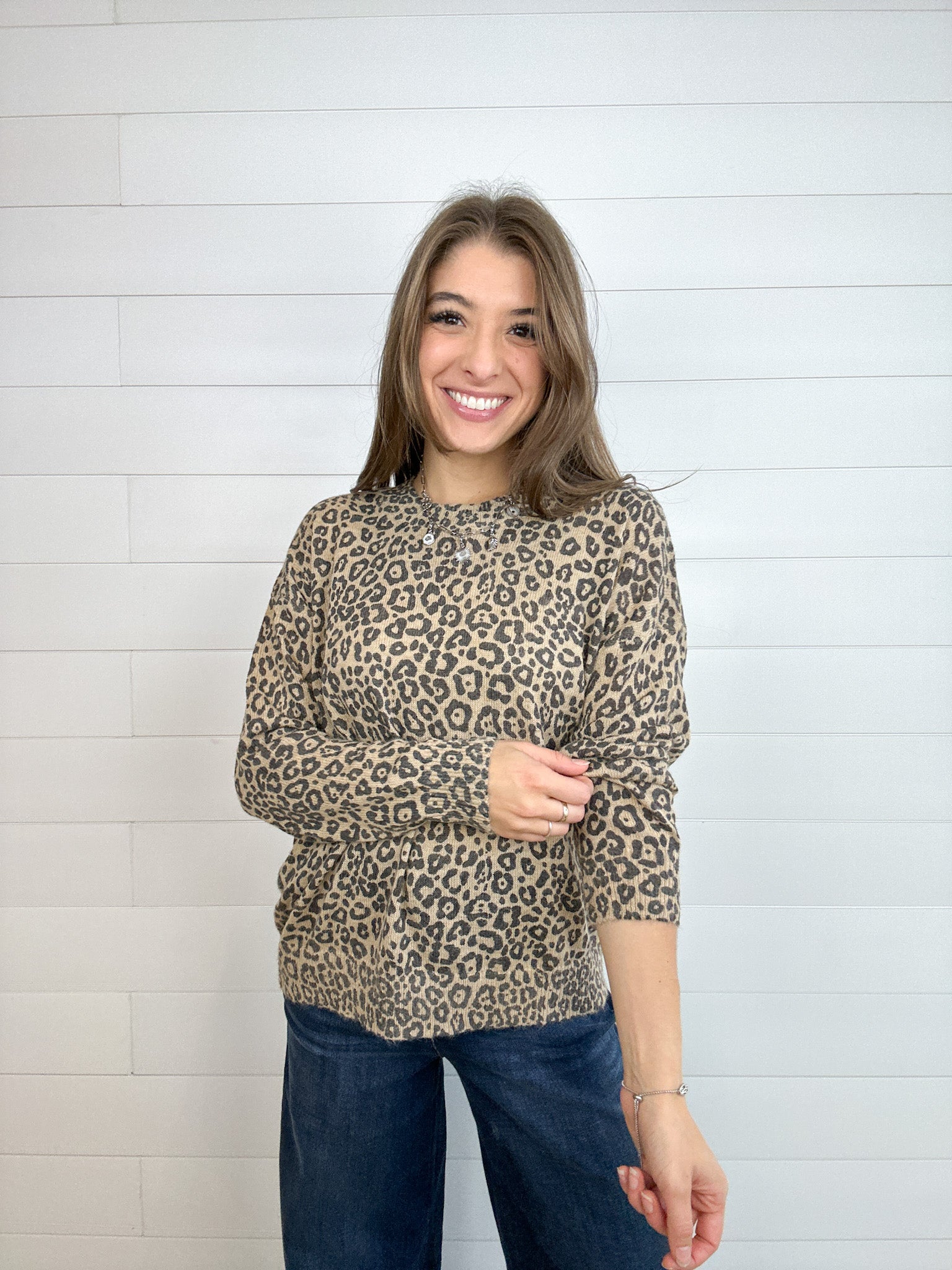 Snuggle into effortless style with this relaxed-fit leopard pullover. Knit from a soft, cozy blend, itâs the perfect mix of laid-back comfort and bold print. With its easy fit and classic crew neckline, this sweater is ready for everything from casual days out to cozy nights in.