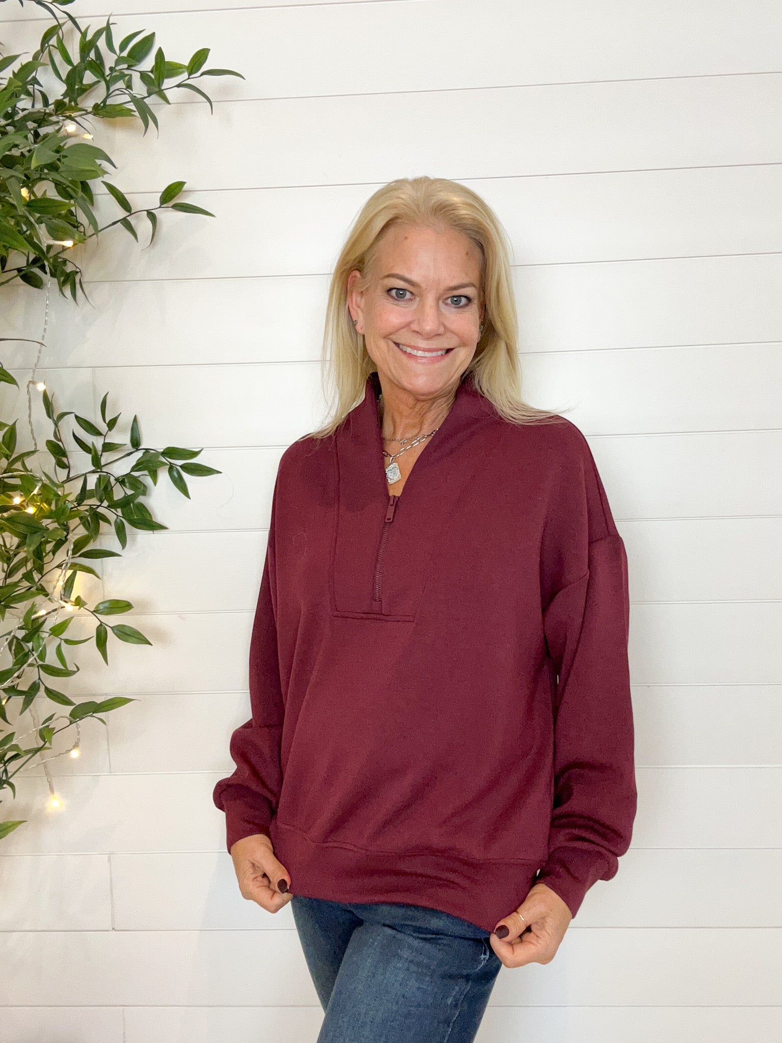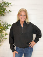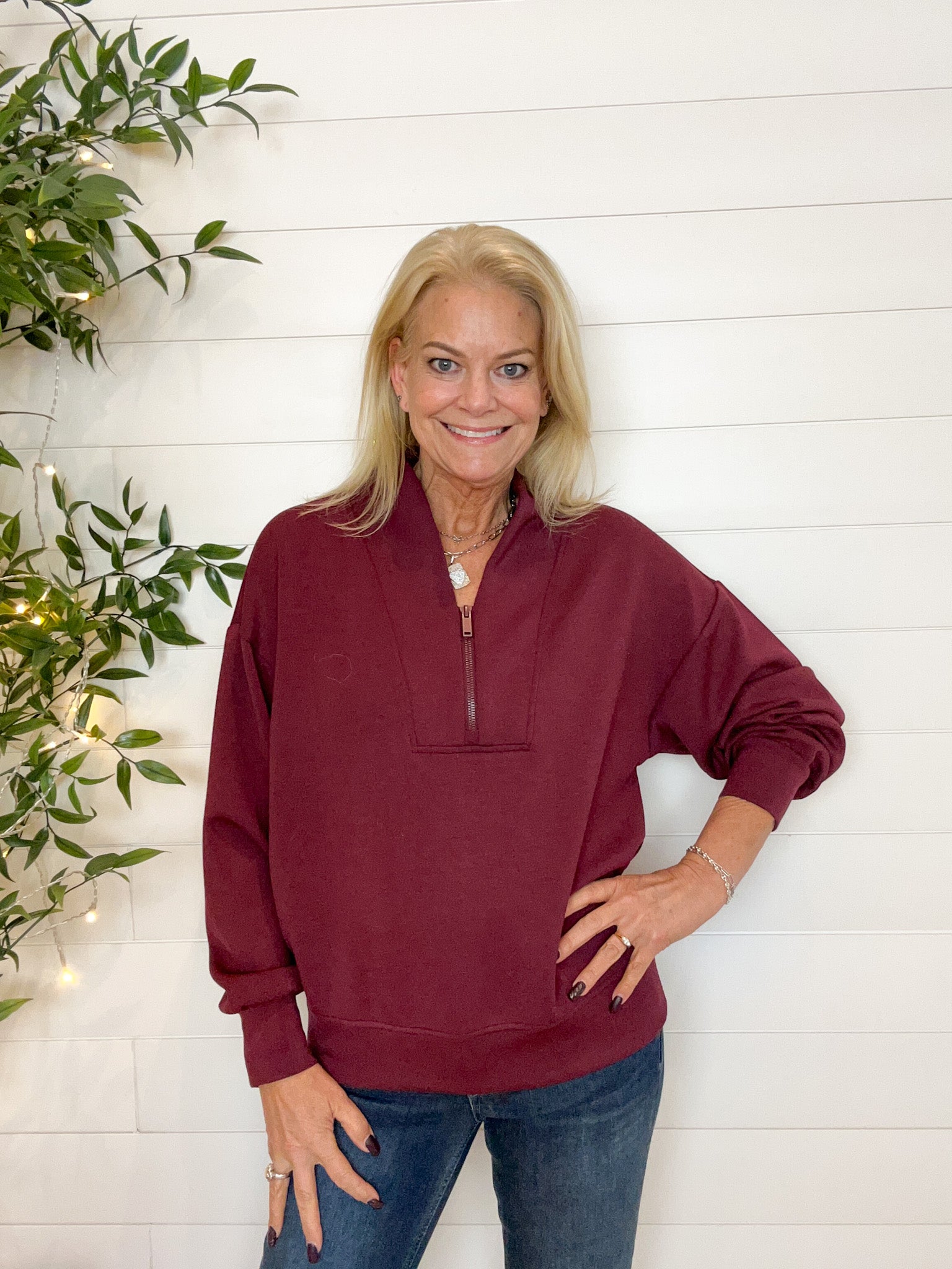 Slip into effortless sophistication with our Scuba Luxe Half Zip Pullover. Made from an ultra-silky modal blend, this piece feels as dreamy as it looks — lightweight, smooth, and totally chic. The relaxed fit, bubbled sleeves, and quarter zip neckline give it that elevated athleisure edge that transitions from lounge to street with ease.