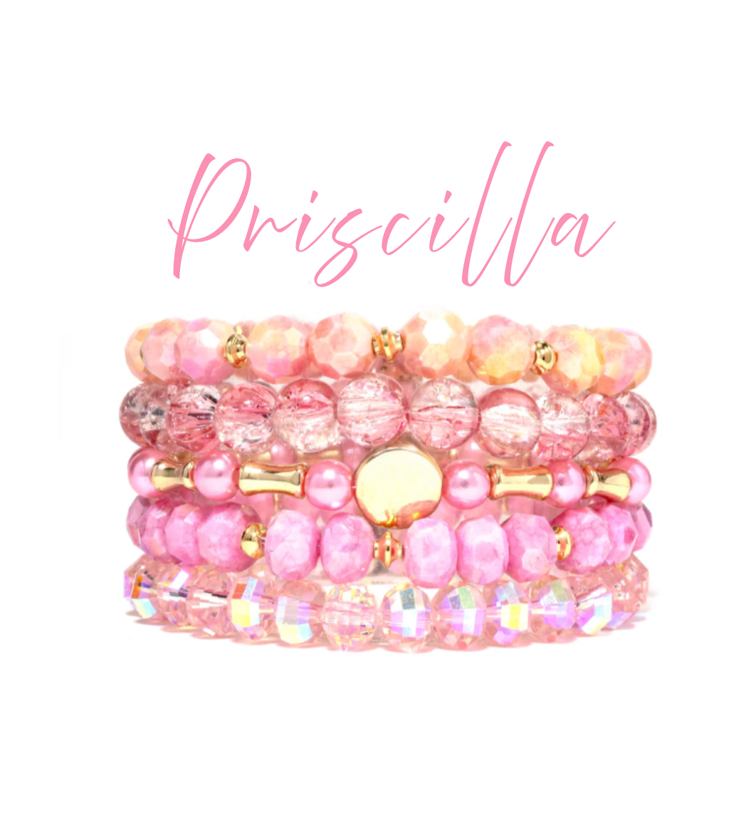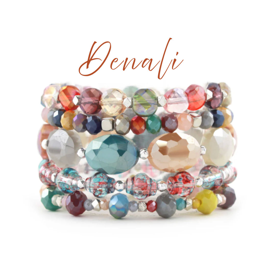 Set of 5 Elastic Beaded Bracelets. Wear all together or wear 3 at a time, or mix and match with your other stacks!