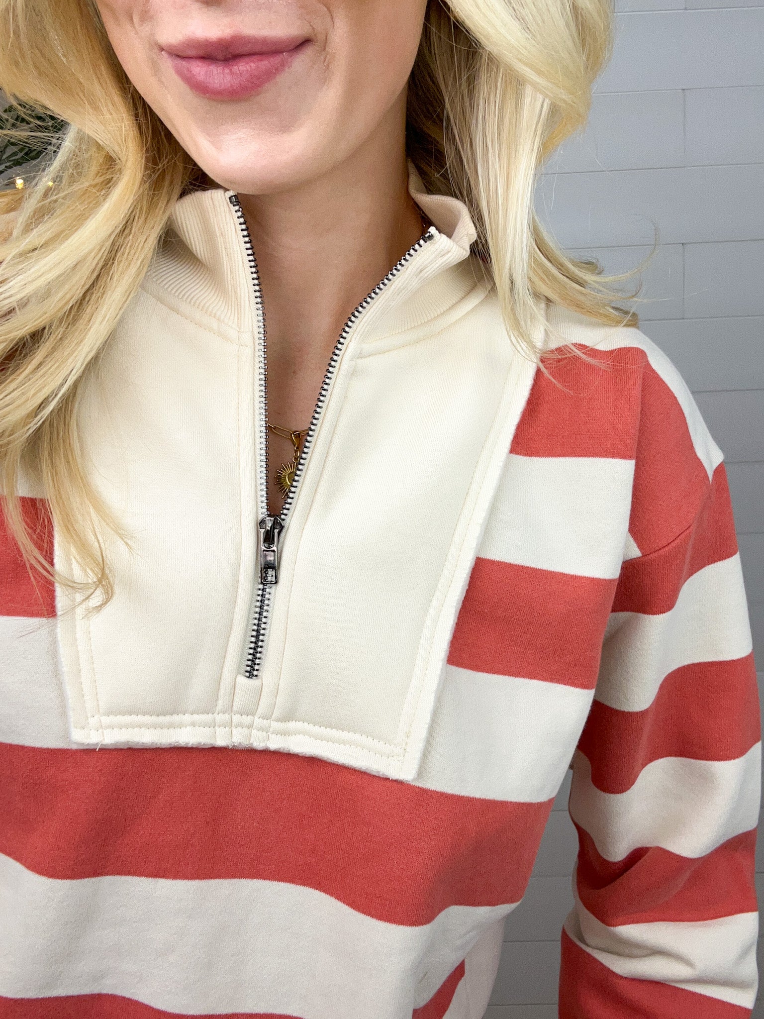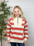 Meet your new everyday favorite: the Wide Stripe French Terry Half-Zip. Bold, cozy, and effortlessly sporty-chic, this brushed French terry pullover gives you that perfect mix of comfort and polish. The half-zip neckline lets you switch between relaxed and refined in a snap, while the wide stripes keep things fun and fresh.