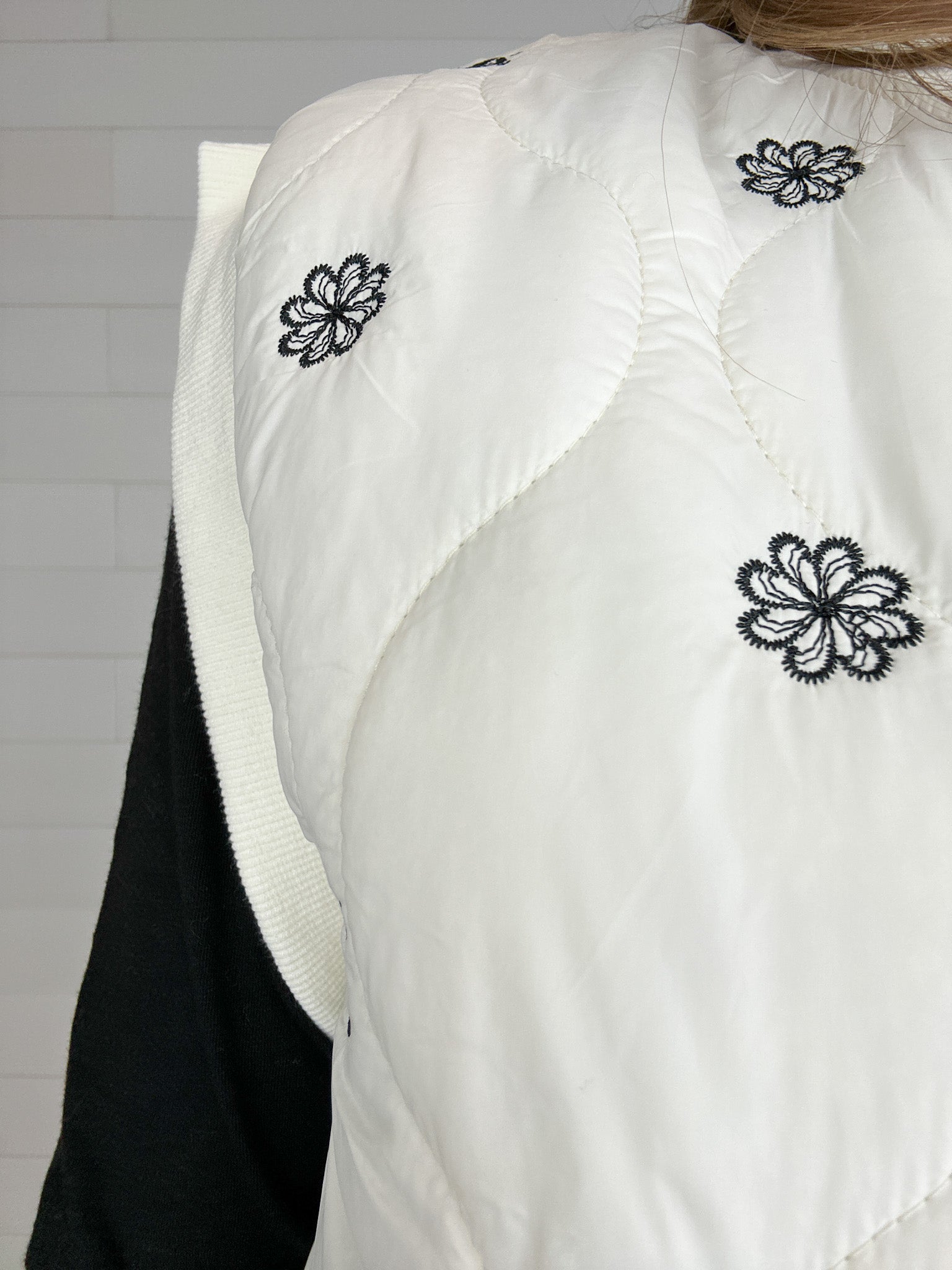 Wispy Floral Embroidered Puffer Vest